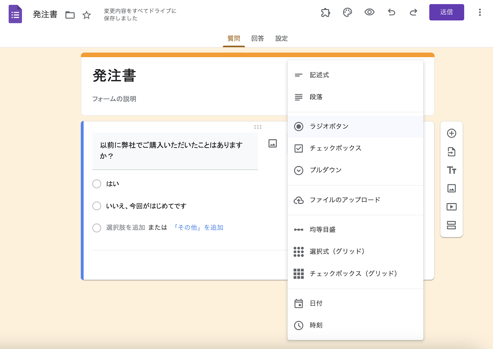 Googleフォームの発注書は、販売業者にとって馴染みのあるフォーマットであり、誰でも簡単に使用できるため、中小企業にとっては便利でしょう。しかし、Googleフォームには購買プロセスをさらに効率化できる機能が欠けています。