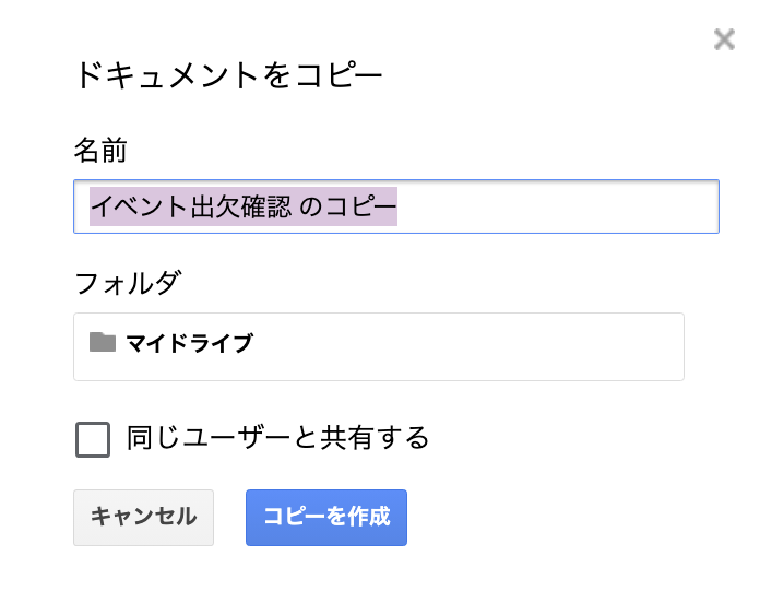 - ポップアップしたウィンドウで、新しいフォームの名前を入力し、保存するフォルダを選択します。また、以前と同じ人とフォームを共有できるオプションもあります。これらの手順を実行したら、「コピーを作成」をクリックします。