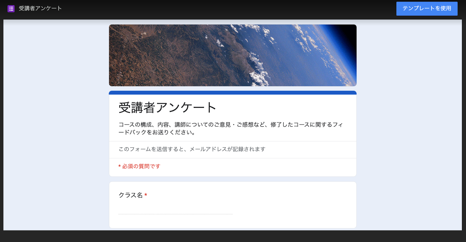 Googleフォームのコピーの作り方がわかったところで、次はGoogleフォームのテンプレートのコピーの作成方法をご説明しましょう。テンプレートギャラリーからテンプレートを選び、「テンプレートを使う」ボタンをクリックします。新しいフォームが自動的にドライブに追加され、上記の手順で名前を変更することができます。