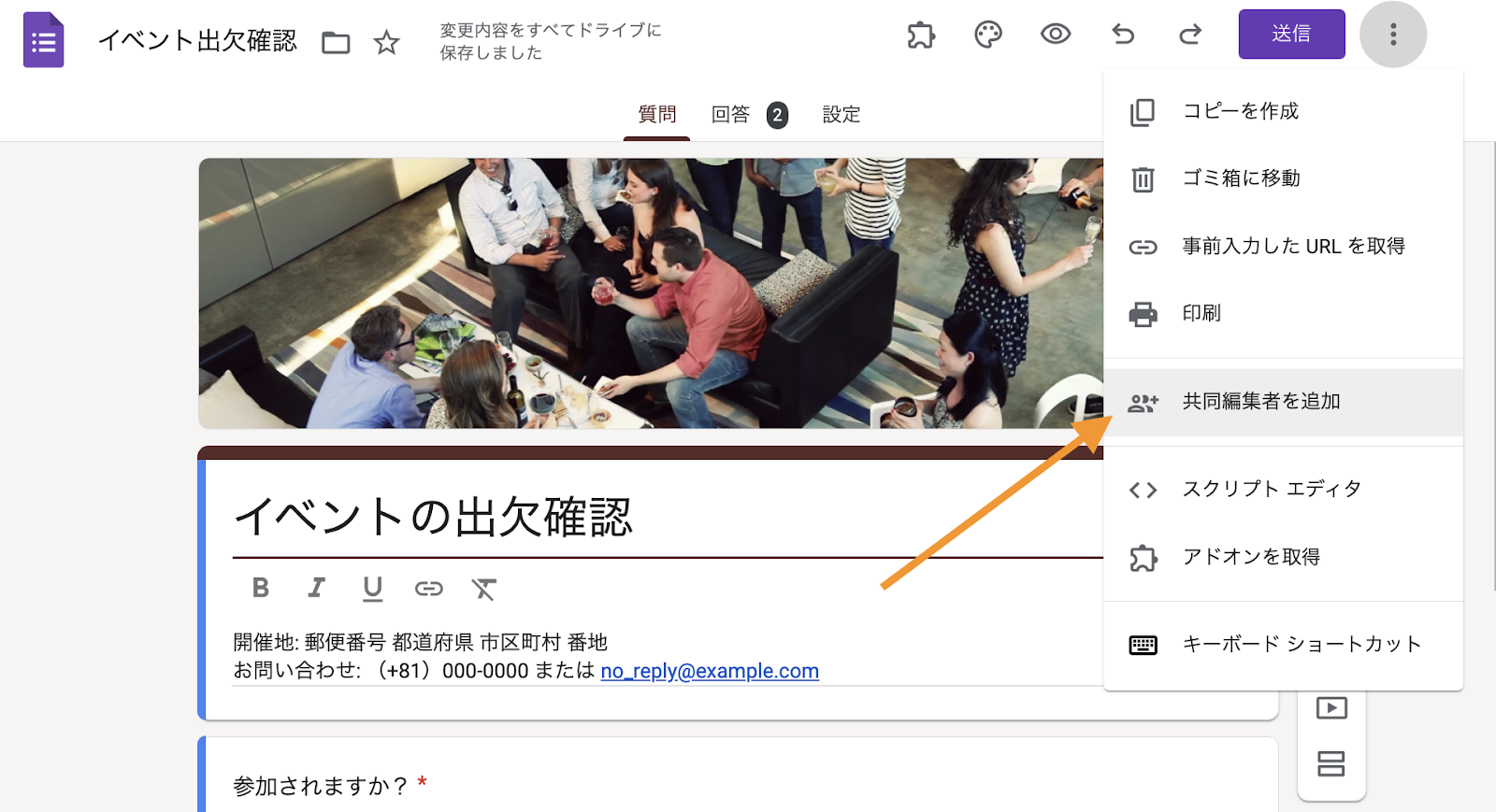 そのためには、フォーム上で共同編集者の追加が必要です。ここからは、その方法をご紹介します:
