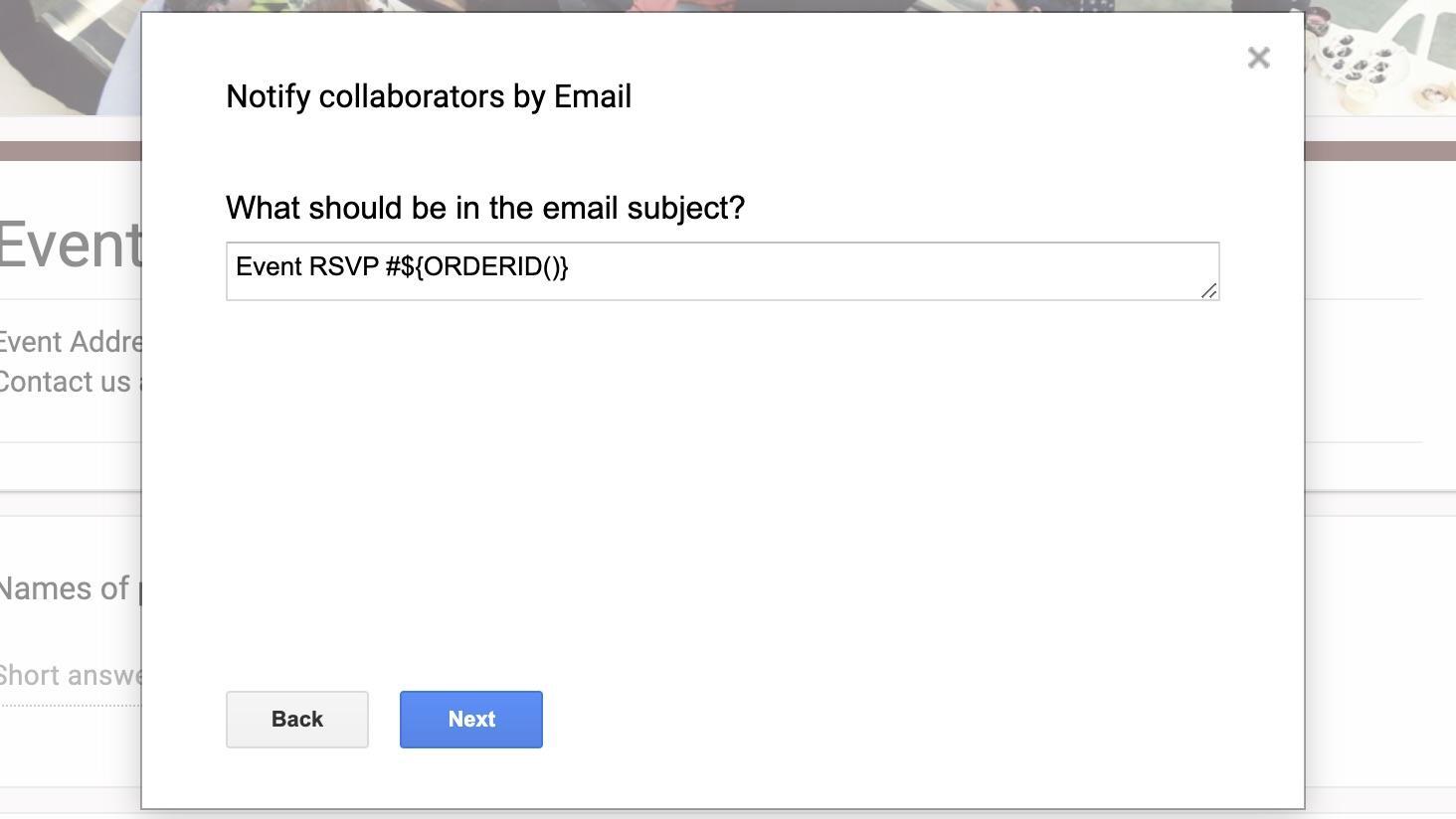 - Googleフォームのメール通知の件名を「Email Subject」に、本文を「Email Body」に入力します。 {{All Answers}} という変数を使用すると、フォーム上のすべての回答を含めることができます。