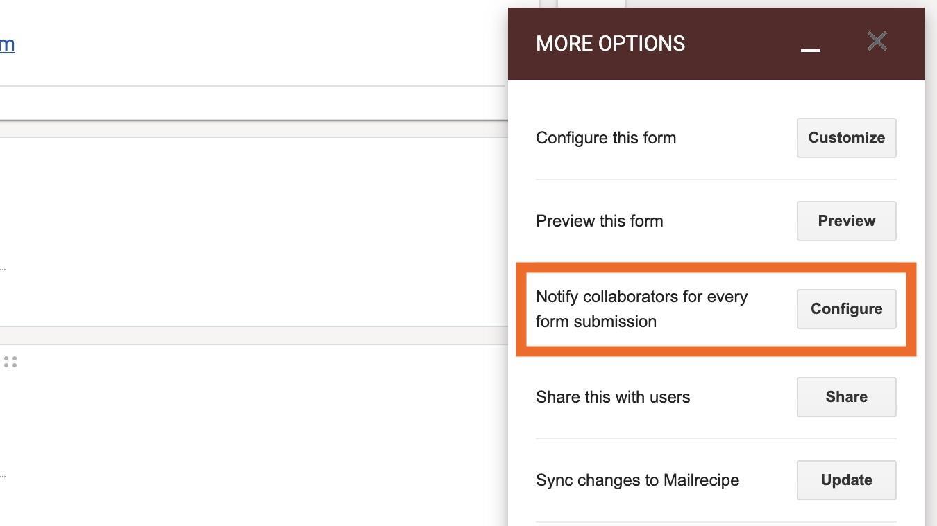 - 「Notify collaborators for every form submission(フォームを送信するごとに共同作業者に通知する)」 を選択します。