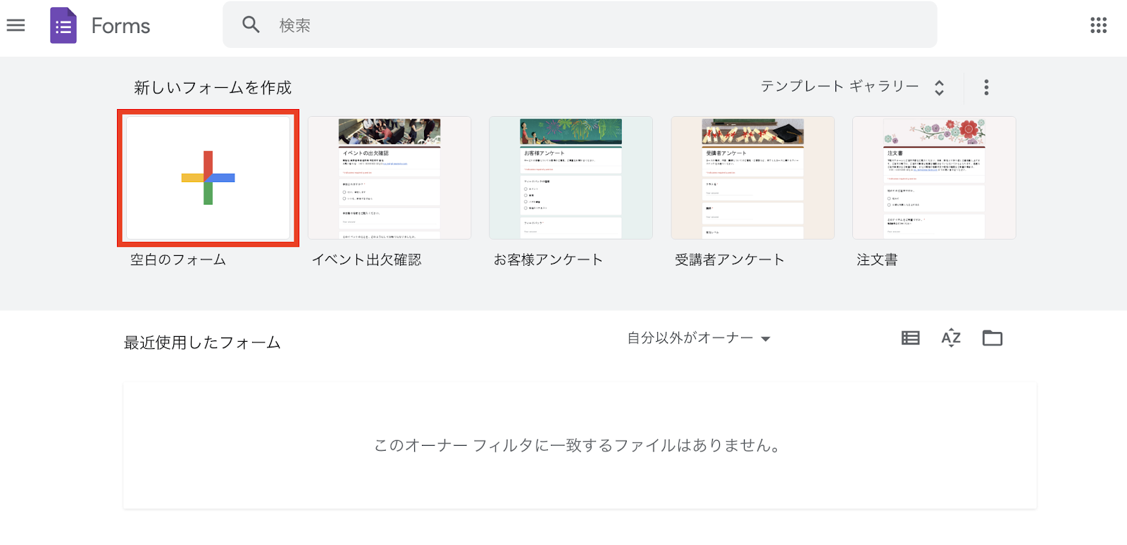 すでに、プルダウンリストを追加したいフォームがある方もいるでしょう。しかし、そうではない場合は、Googleフォームにアクセスし、大きなプラスマークをクリックして新規フォームを作成してください。