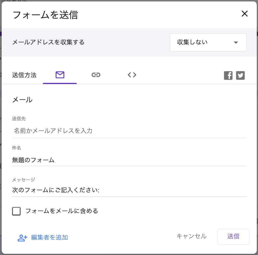 プルダウンをテストし、フォームが思い通りに仕上がったら、次はフォームを他の人と共有しましょう。右上の「送信」ボタンをクリックし、フォームを送信したいメールアドレスを入力します。必須項目をすべて入力したら「送信」をクリックしてください。また、フォームへのリンクをコピーしたり、埋め込みコードを使用してウェブサイトに追加することもできます。