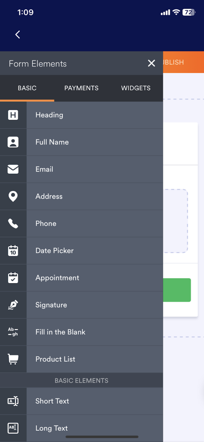 - フォームを共有する準備ができたら、右上の「公開」タブをタップします。