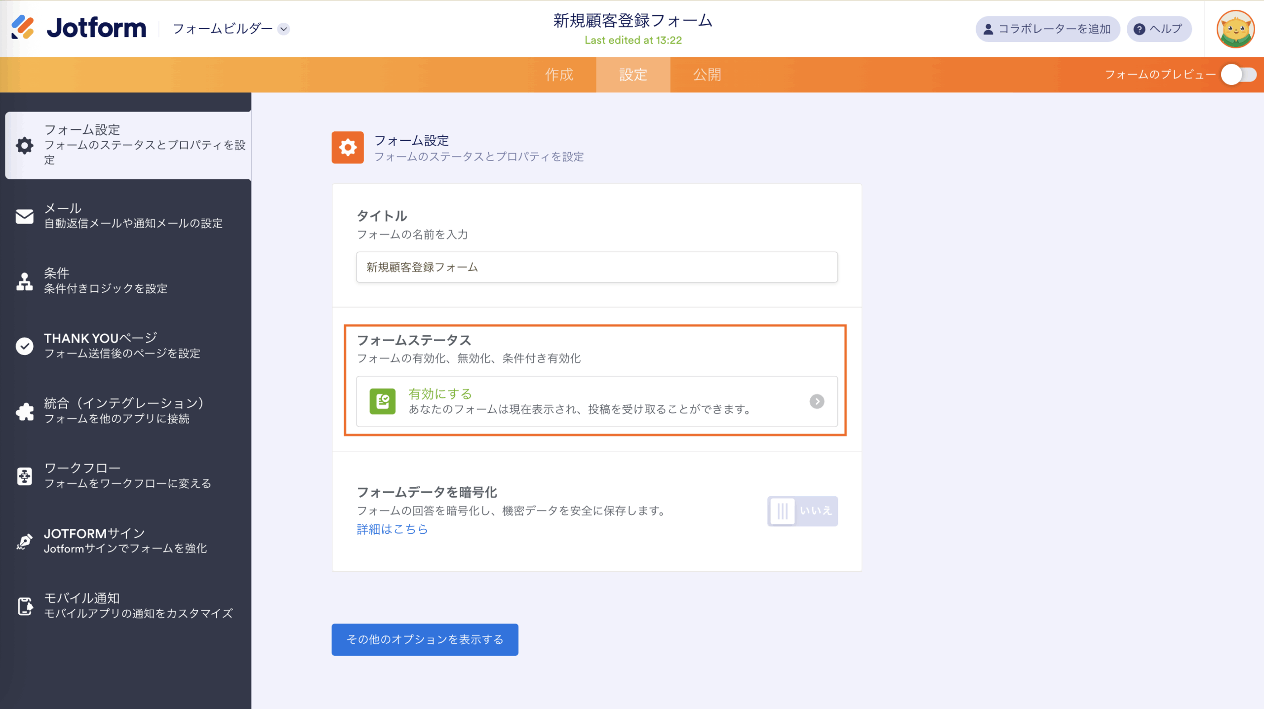 - フォームステータスをクリックして開きます。