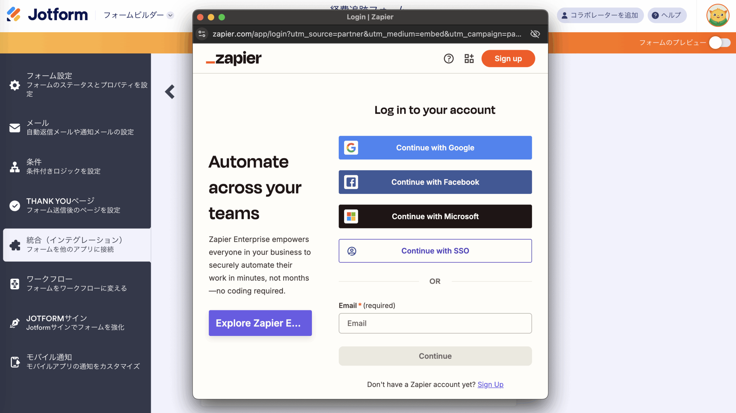 - Zapierアカウントにログインするか、まだお持ちでない場合はアカウントを作成します。