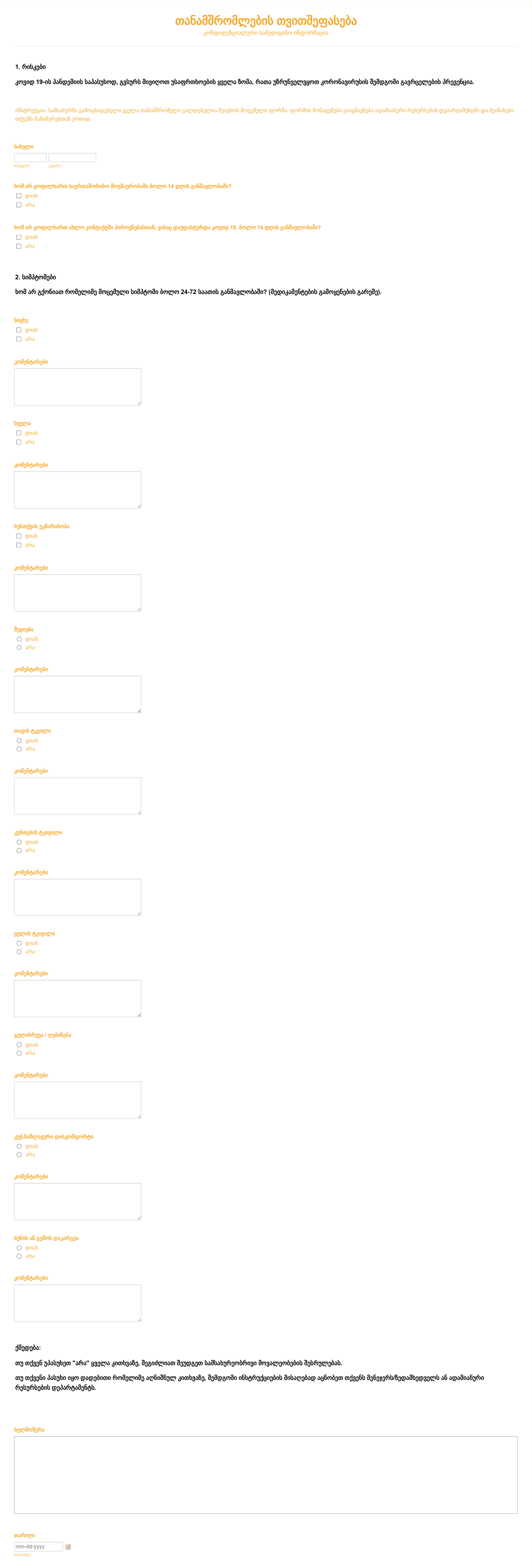 Covid კითხვარი ექიმის კაბინეტისათვის