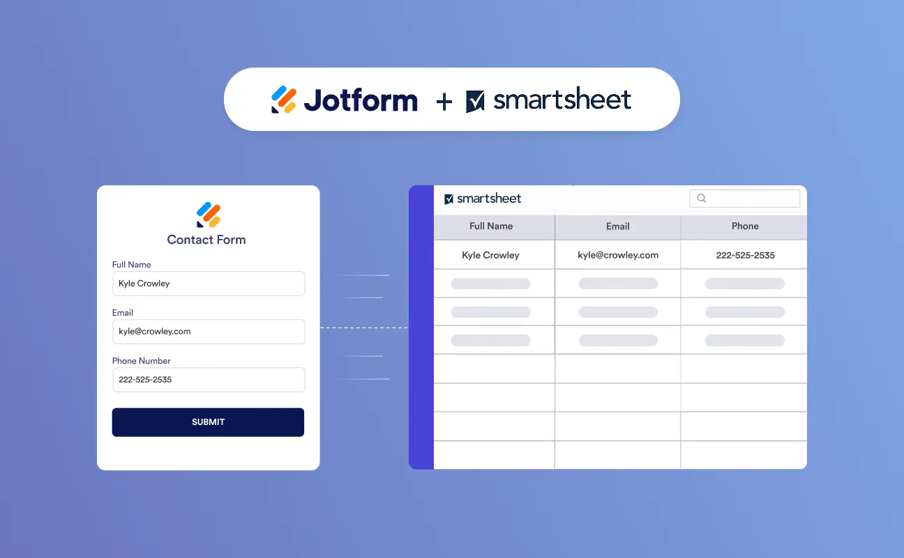 მომენტალურად დააკავშირეთ ფორმის მონაცემები თქვენს სხვა ონლაინ ანგარიშებს Jotform-ის მონაცემთა მართვის უფასო ინტეგრაციებით. არ აქვს მნიშვნელობა უგზავნით ახალ ამოცანებს პროექტის მართვის პროგრამებს, ახდენთ შედეგების ანალიზს თქვენს ფავორიტ ელექტრონული ცხრილის აპლიკაციაში ან მიღებული მონაცემების ავტომატიზაციას - ჩვენს მონაცემთა მართვის უფასო აპლიკაციებს შეუძლიათ დაგეხმაროთ შეასრულოთ ყველა დავალება - არ საჭიროებს კოდის წერას!