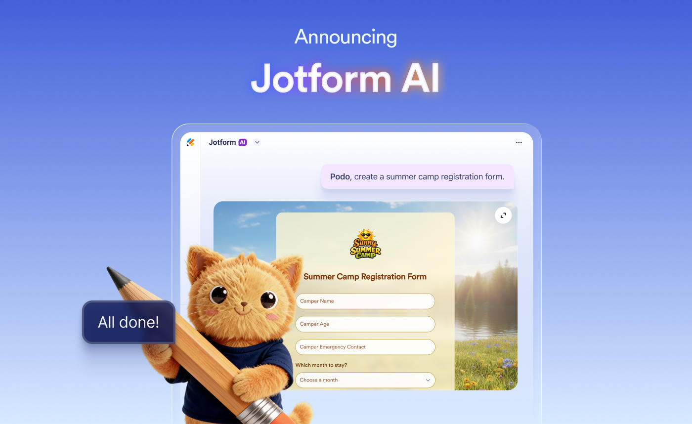 Today, we’re thrilled to unveil the next evolution of Jotform with Jotform AI: changing form creation from a manual, drag-and-drop builder experience to conversational, AI-powered assistance.
