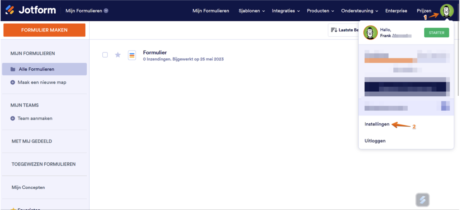 - Op de My Forms pagina, klik op je profielfoto rechtsboven om het navigatiemenu te openen.