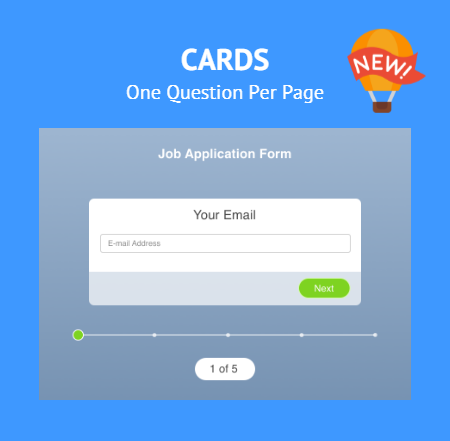 Jotform Kaart biedt daarentegen een eenvoudigere maar gestroomlijnde benadering voor het bouwen van formulieren. In plaats van alle vragen op één pagina te zien, zien gebruikers de vragen één voor één per pagina.