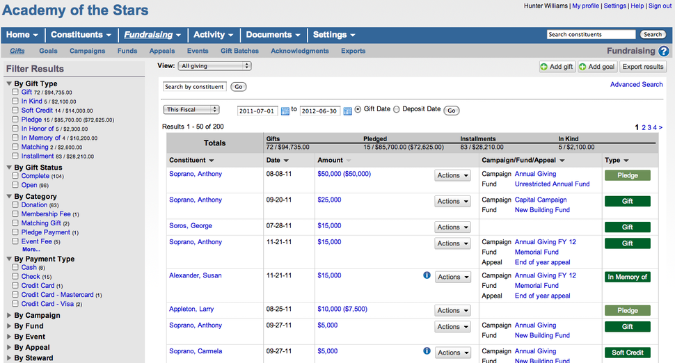 Key features: Payment processing, personalized communications, report writer, grant and volunteer tracking