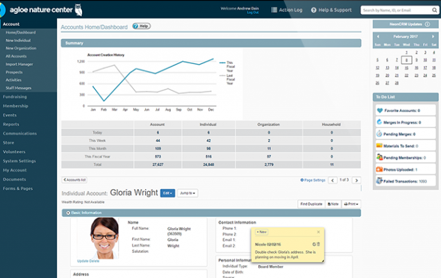 Bloomerang is a comprehensive cloud-based donor database. The easy-to-navigate interface offers everything you’d expect from a nonprofit CRM: a view of every donor’s engagement level, online giving forms, email marketing tools, the ability to manage a nonprofit’s social media presence, and more.