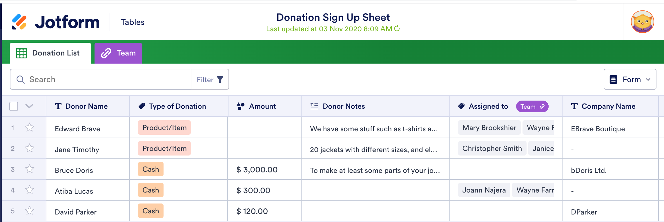 Users can create customizable donation signup sheets and track donations in customized tables. Plus, users can integrate all of the information with platforms like Google Sheets and Airtable to automatically collect and organize data about every transaction.