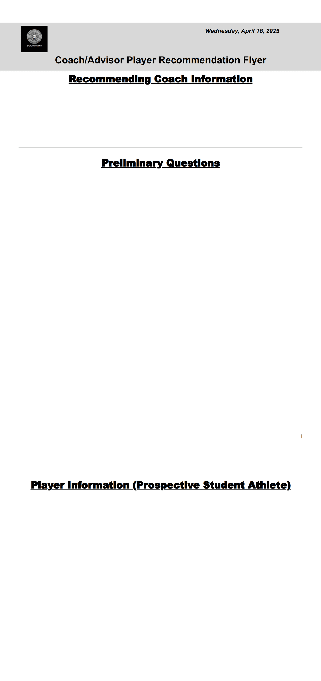 1:1 Solutions Play Recommendation Form