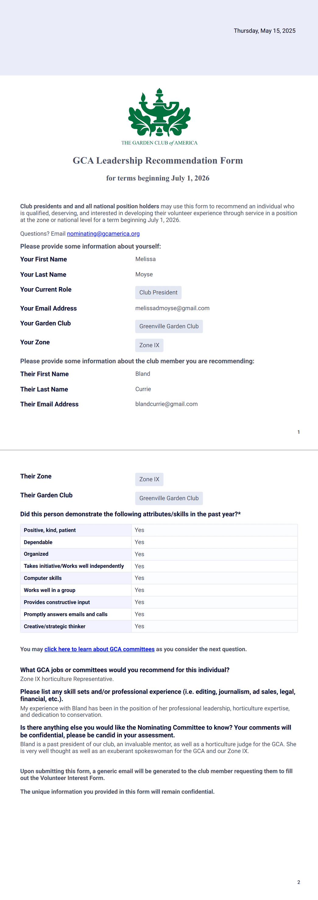 2026 Leadership Recommendation Form