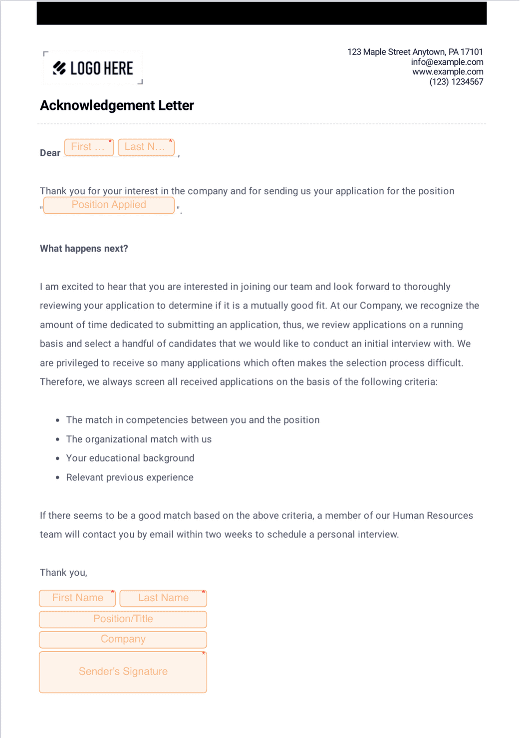 Beyond the basics, you can customize your acknowledgment letter to fit your exact circumstances. Your letter may include