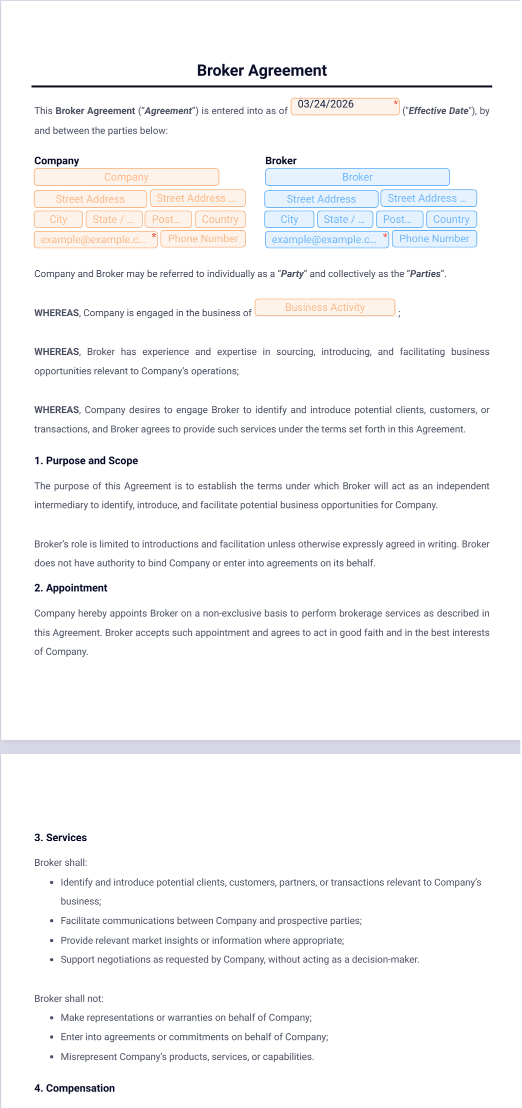 5) How does a broker agreement template work?