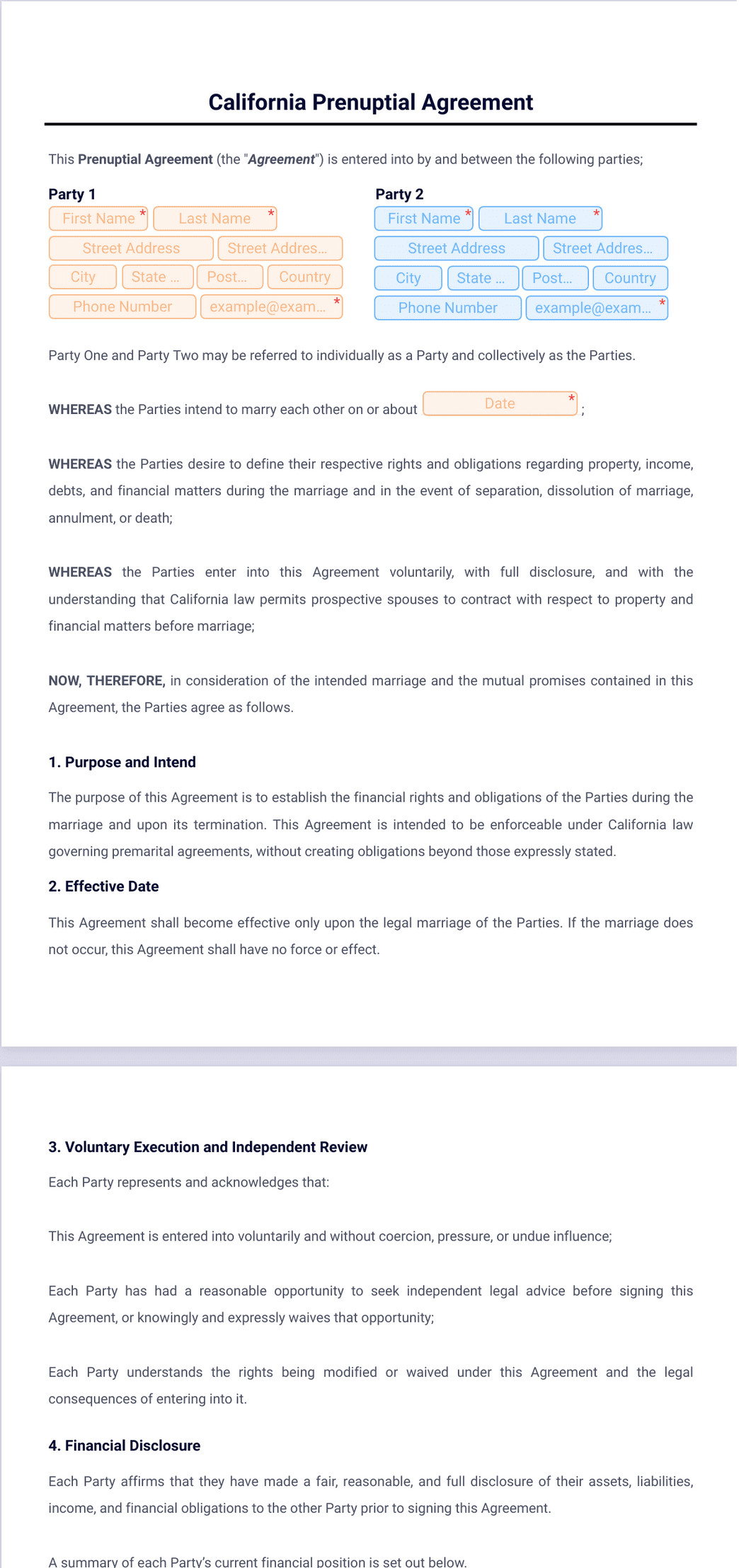 1) What is California prenuptial agreement template?