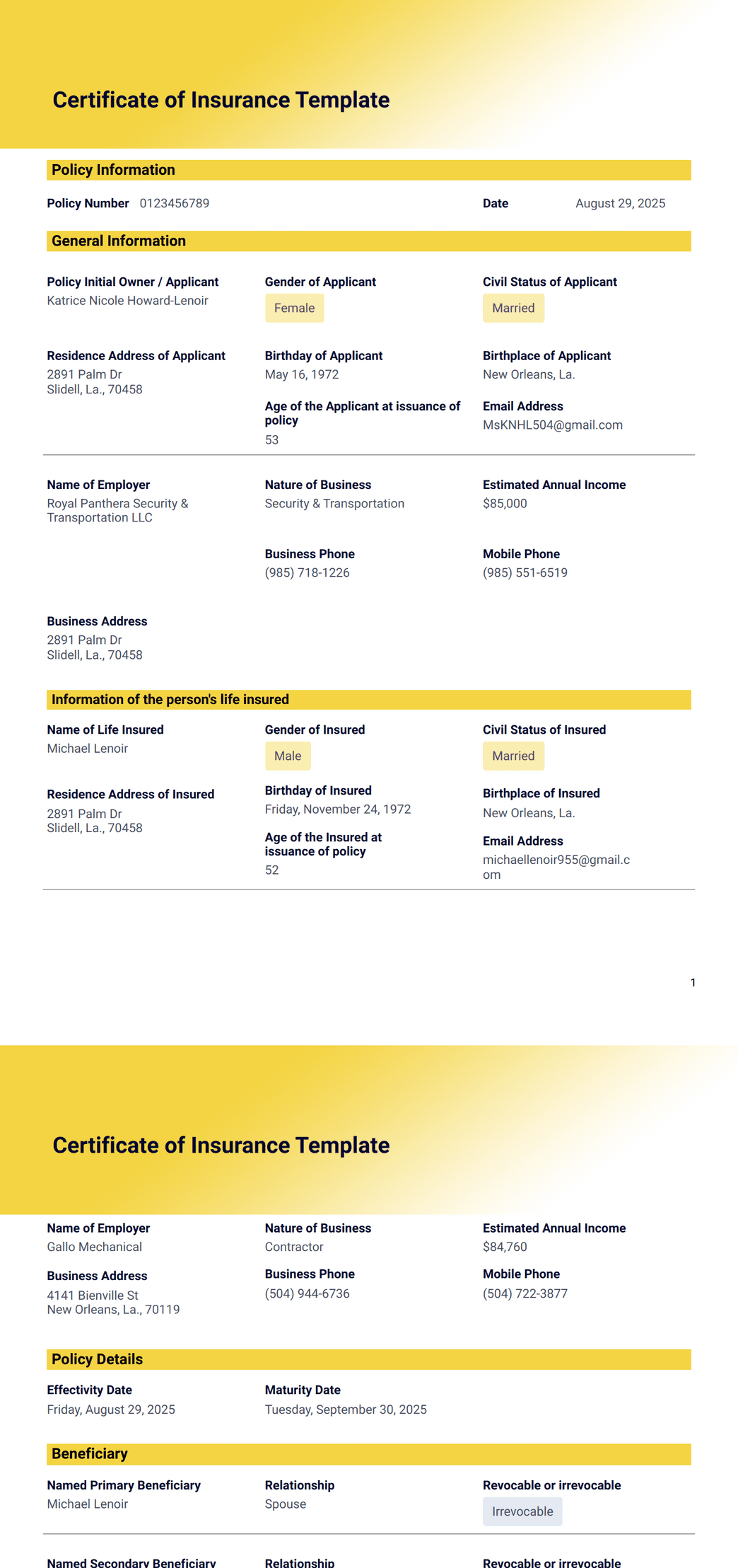 Certificate Of Insurance