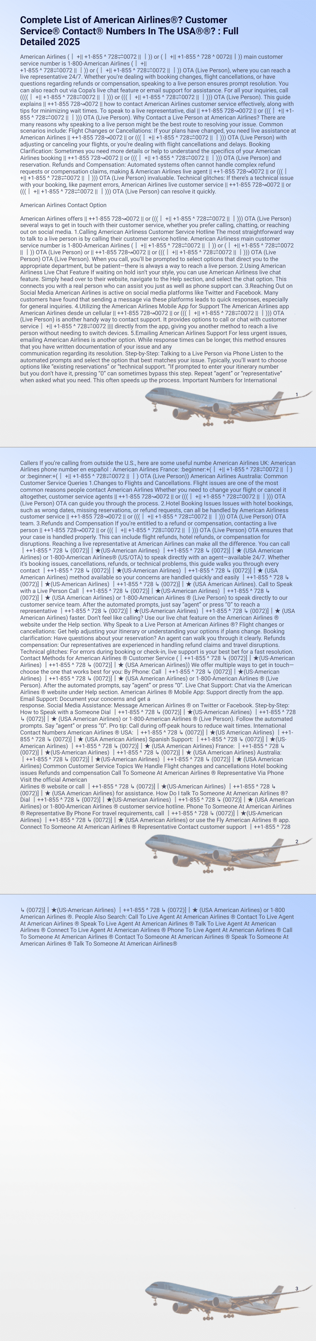 but you don’t have it, pressing “0” can sometimes bypass this step. Repeat “agent” or “representative” when asked what you need. This often speeds up the process. Important Numbers for International Callers If you’re calling from outside the U.S., here are some useful numbe American Airlines UK: American Airlines phone number en español : American Airlines France: :beginner:+(║ +|| +1-855 ^ 728⇌0072 || ║) or :beginner:+(║ +|| +1-855 ^ 728⇌0072 || ║) OTA (Live Person)) American Airlines Australia: Common Customer Service Queries 1.Changes to Flights and Cancellations. Flight issues are one of the most common reasons people contact American Airlines Whether you need to change your flight or cancel it altogether, customer service agents || ++1-855 728↝0072 || or (((║ +|| +1-855 ^ 728⇌0072 || ║))) OTA (Live Person) OTA can guide you through the process. 2.Hotel Booking Issues Issues with hotel bookings, such as wrong dates, missing reservations, or refund requests, can all be handled by American Airliness customer service || ++1-855 728↝0072 || or (((║ +|| +1-855 ^ 728⇌0072 || ║))) OTA (Live Person) OTA team. 3.Refunds and Compensation If you’re entitled to a refund or compensation, contacting a live person || ++1-855 728↝0072 || or (((║ +|| +1-855 ^ 728⇌0072 || ║))) OTA (Live Person) OTA ensures that your case is handled properly. This can include flight refunds, hotel refunds, or compensation for disruptions. Reaching a live representative at American Airlines can make all the difference. You can call ║++1-855 ^ 728 ↳ (0072)]║★(US-American Airlines) ║++1-855 ^ 728 ↳ (0072)]║★ (USA American Airlines) or 1-800-American Airlines (US/OTA) to speak directly with an agent—available 24/7. Whether it’s booking issues, cancellations, refunds, or technical problems, this guide walks you through every contact ║++1-855 ^ 728 ↳ (0072)]║★(US-American Airlines) ║++1-855 ^ 728 ↳ (0072)]║★ (USA American Airlines) method available so your concerns are handled quickly and easily ║++1-855 ^ 728 ↳ (0072)]║★(US-American Airlines) ║++1-855 ^ 728 ↳ (0072)]║★ (USA American Airlines). Call to Speak with a Live Person Call ║++1-855 ^ 728 ↳ (0072)]║★(US-American Airlines) ║++1-855 ^ 728 ↳ (0072)]║★ (USA American Airlines) or 1-800-American Airlines (Live Person) to speak directly to our customer service team. After the automated prompts, just say “agent” or press “0” to reach a representative ║++1-855 ^ 728 ↳ (0072)]║★(US-American Airlines) ║++1-855 ^ 728 ↳ (0072)]║★ (USA American Airlines) faster. Don’t feel like calling? Use our live chat feature on the American Airlines website under the Help section. Why Speak to a Live Person at American Airlines ? Flight changes or cancellations: Get help adjusting your itinerary or understanding your options if plans change. Booking clarification: Have questions about your reservation? An agent can walk you through it clearly. Refunds compensation: Our representatives are experienced in handling refund claims and travel disruptions. Technical glitches: For errors during booking or check-in, live support is your best bet for a fast resolution. Contact Methods for American Airlines Customer Service (║++1-855 ^ 728 ↳ (0072)]║★(US-American Airlines) ║++1-855 ^ 728 ↳ (0072)]║★ (USA American Airlines)) We offer multiple ways to get in touch—choose the one that works best for you: By Phone: Call ║++1-855 ^ 728 ↳ (0072)]║★(US-American Airlines) ║++1-855 ^ 728 ↳ (0072)]║★ (USA American Airlines) or 1-800-American Airlines (Live Person). After the automated prompts, say “agent” or press “0”. Live Chat Support: Chat via the American