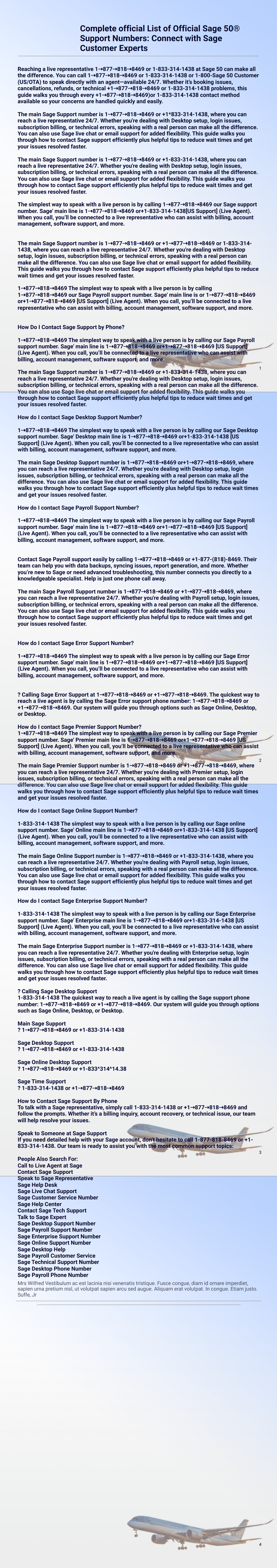 1-833-314-1438 The simplest way to speak with a live person is by calling our Sage Enterprise support number. Sage' Enterprise main line is 1⇢877⇢818⇢8469 or+1-833-314-1438 [US Support] (Live Agent). When you call, you’ll be connected to a live representative who can assist with billing, account management, software support, and more.