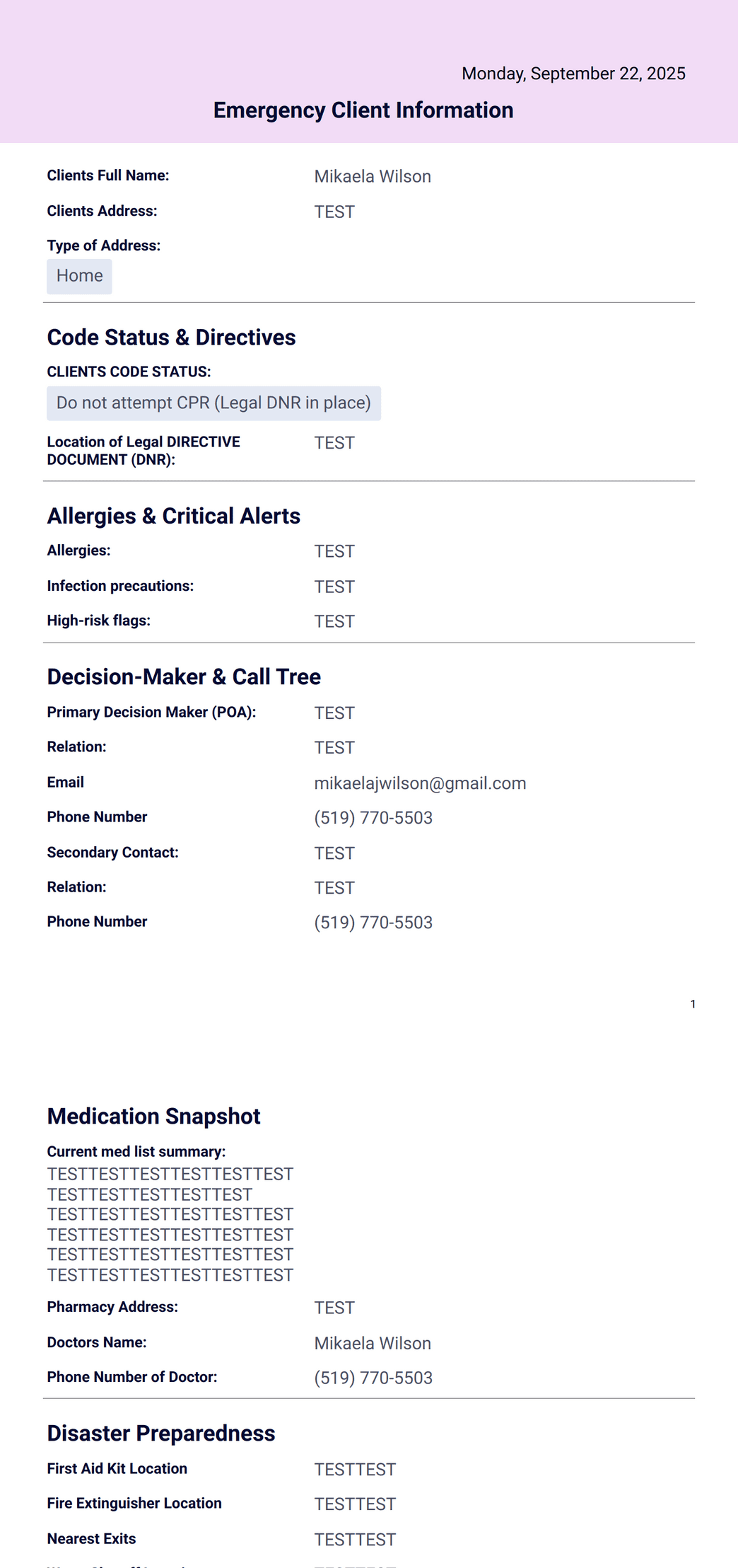 Emergency Client Information
