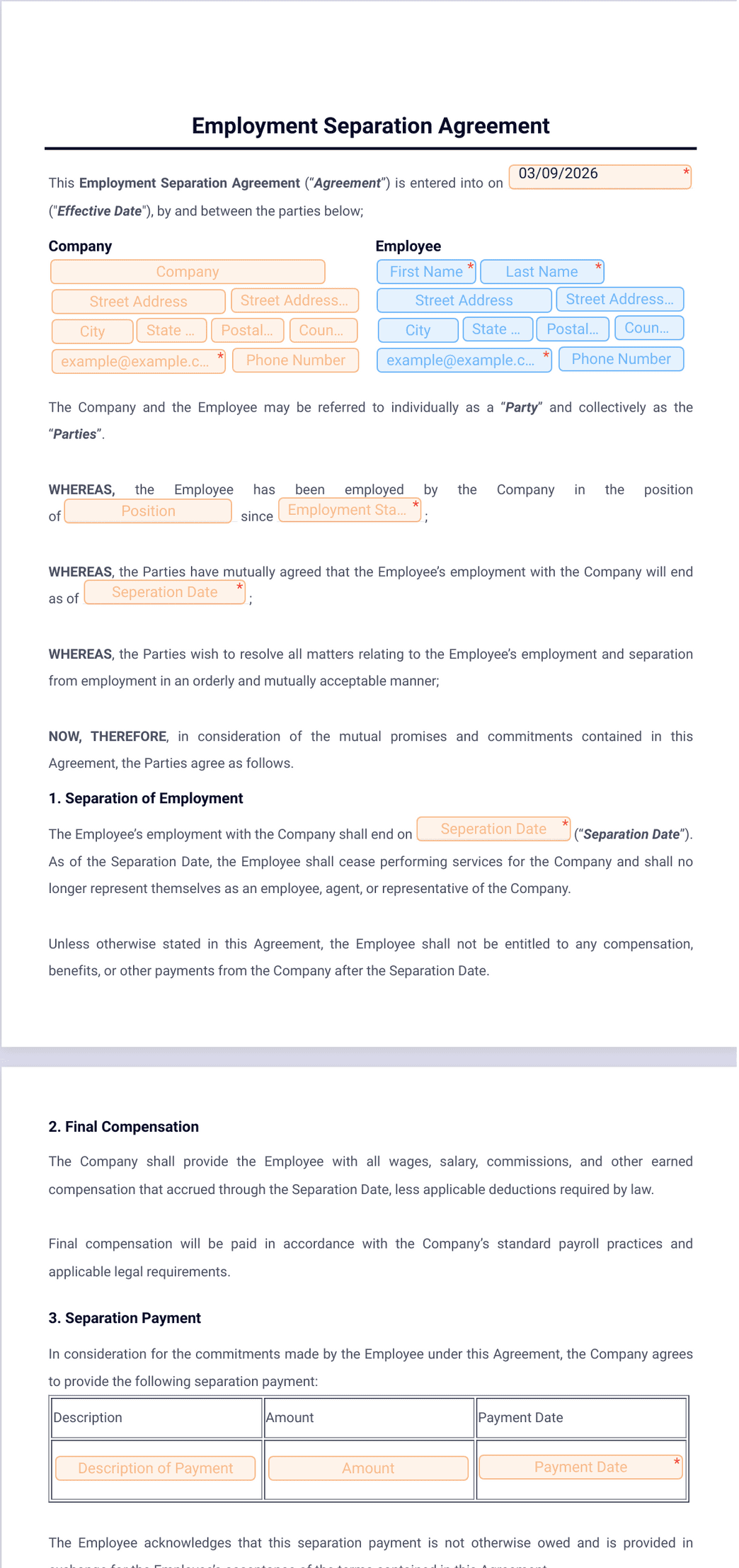 Employment Separation Agreement Template