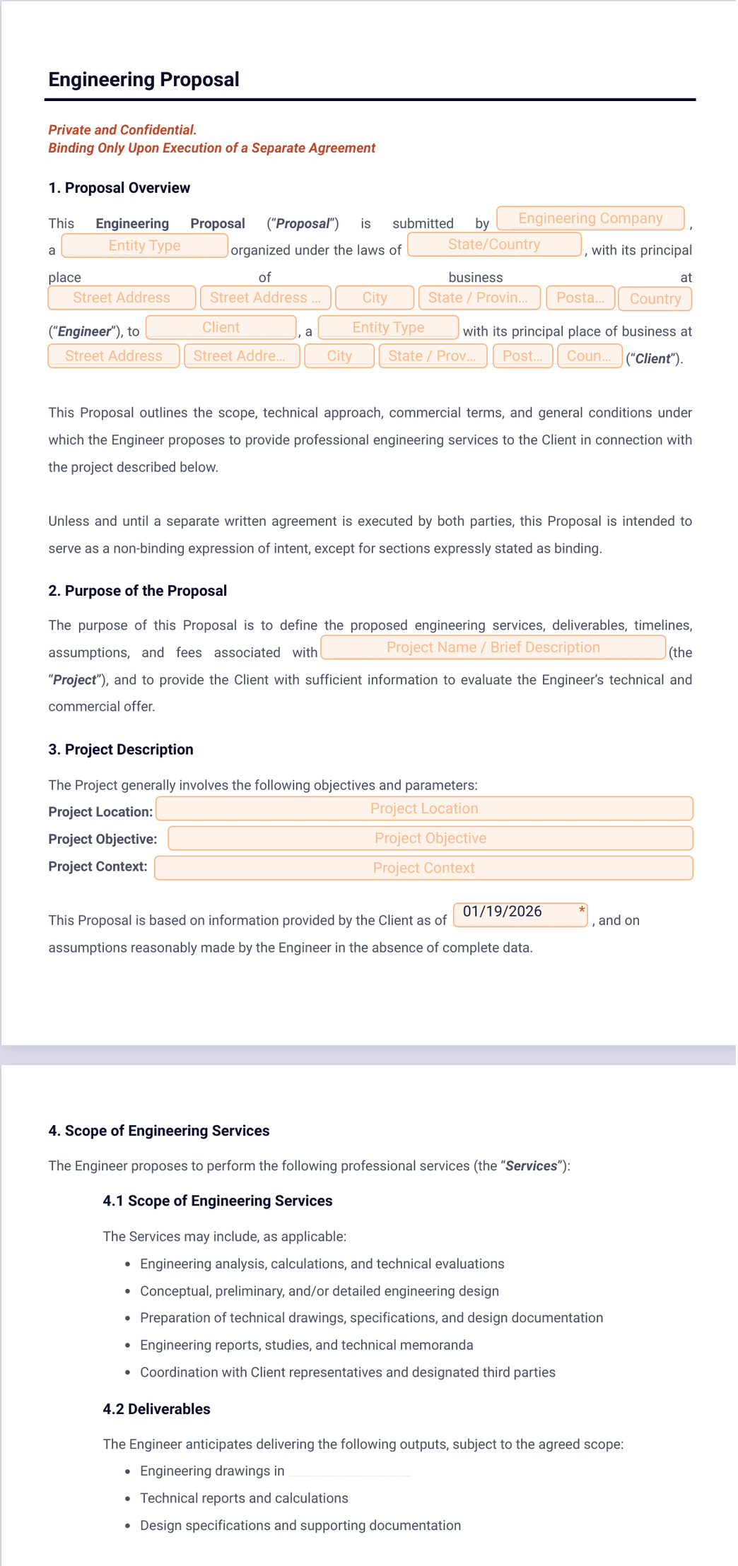 The Engineering Proposal Template is especially beneficial for engineering professionals, project managers, and consultants. It can also be helpful for educational institutions and research organizations that are involved in engineering projects and require a structured format to present their ideas or findings.