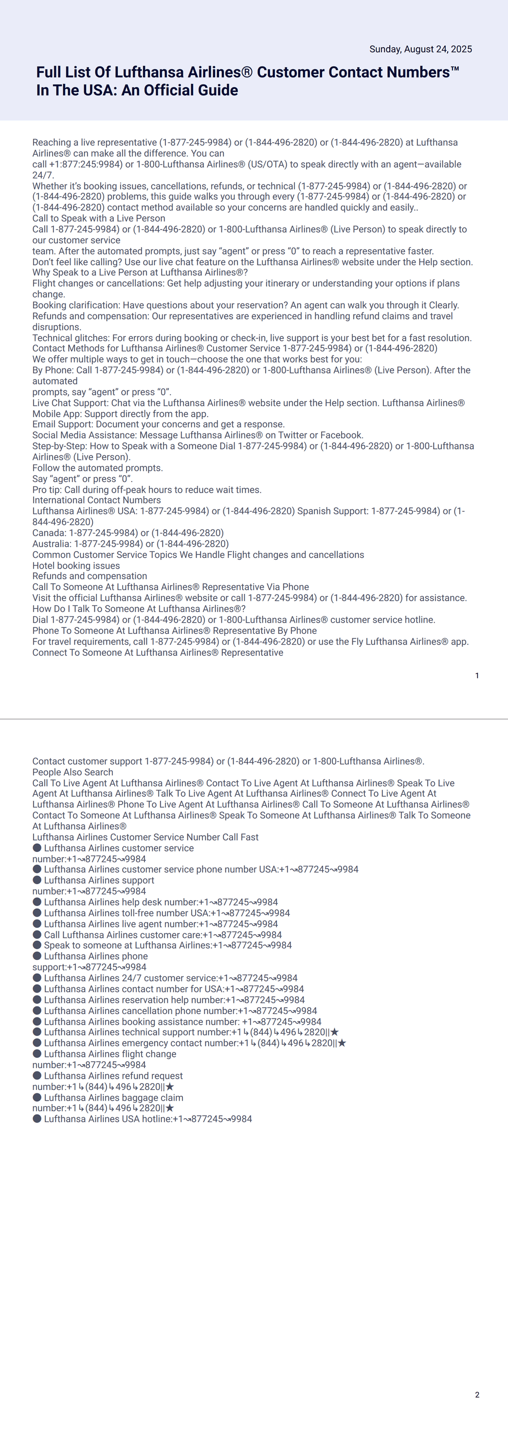 call +1:877:245:9984) or 1-800-Lufthansa Airlines (US/OTA) to speak directly with an agent—available 24/7.