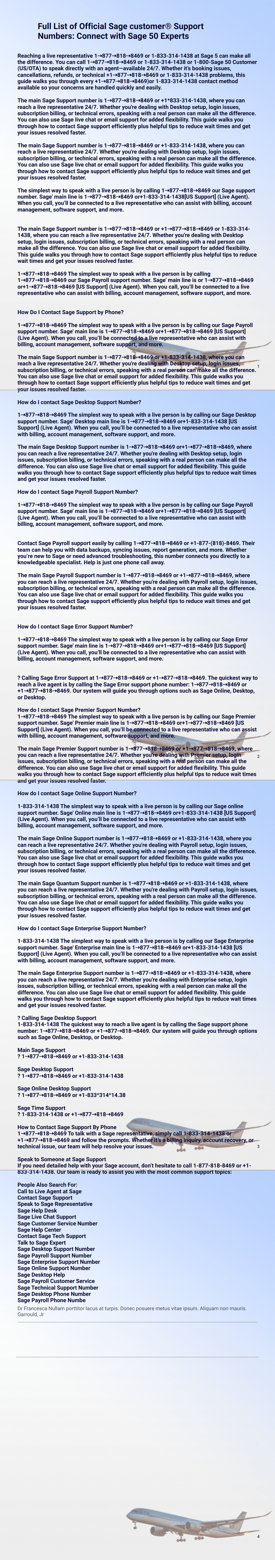 1-833-314-1438 The quickest way to reach a live agent is by calling the Sage support phone number: 1⇢877⇢818⇢8469 or +1⇢877⇢818⇢8469. Our system will guide you through options such as Sage Online, Desktop, or Desktop.