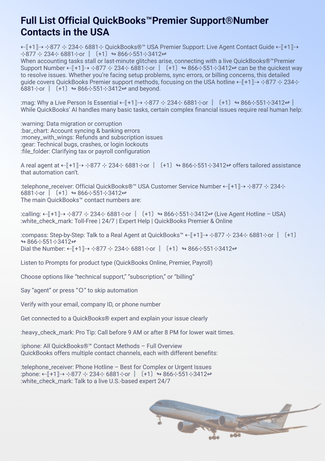 When accounting tasks stall or last-minute glitches arise, connecting with a live QuickBooks™Premier Support Number ⇠⟦+1⟧⇢ ⊹877 ⊹ 234⊹ 6881⊹or ║〔+1〕↬ 866⊹551⊹3412↫ can be the quickest way to resolve issues. Whether you’re facing setup problems, sync errors, or billing concerns, this detailed guide covers QuickBooks Premier support methods, focusing on the USA hotline ⇠⟦+1⟧⇢ ⊹877 ⊹ 234⊹ 6881⊹or ║〔+1〕↬ 866⊹551⊹3412↫ and beyond.
