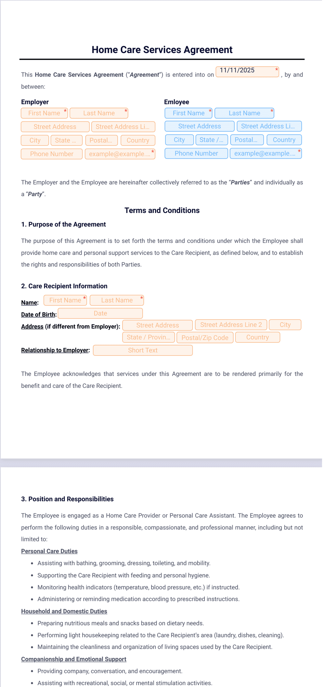 Home Care Services Agreement