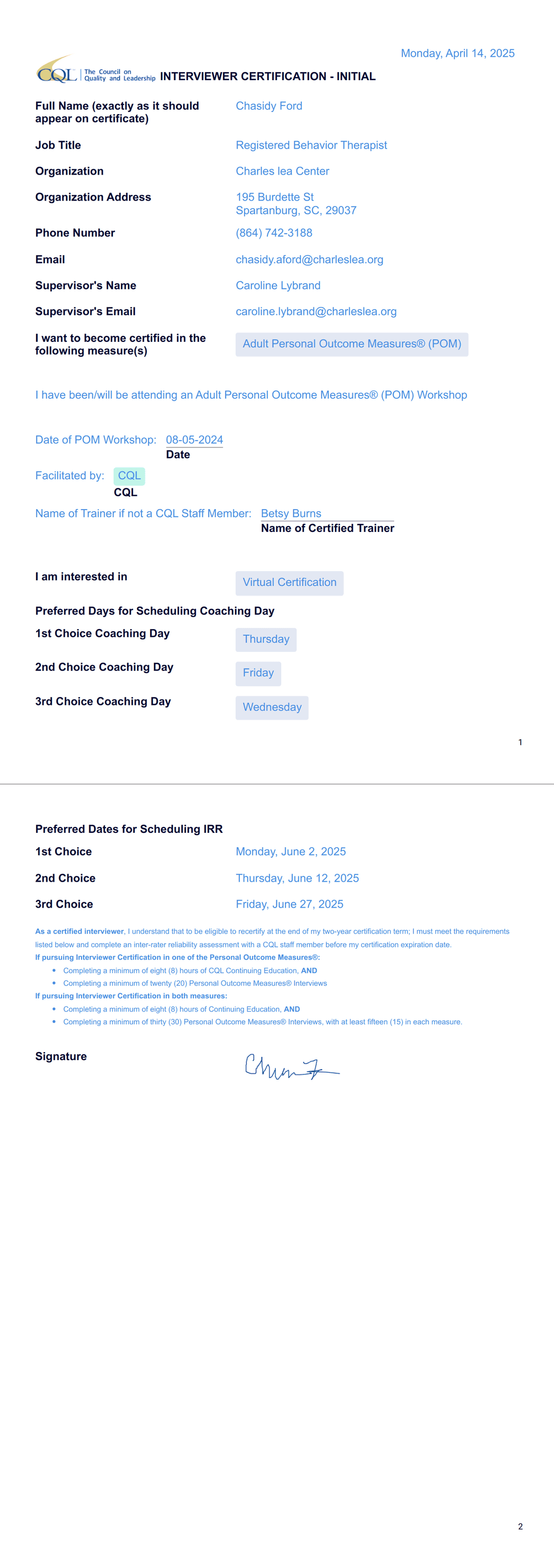 Interviewer Certification - Initial