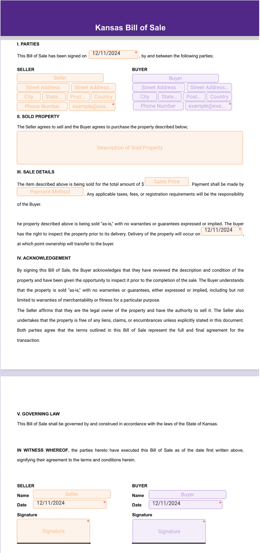 Kansas Bill of Sale