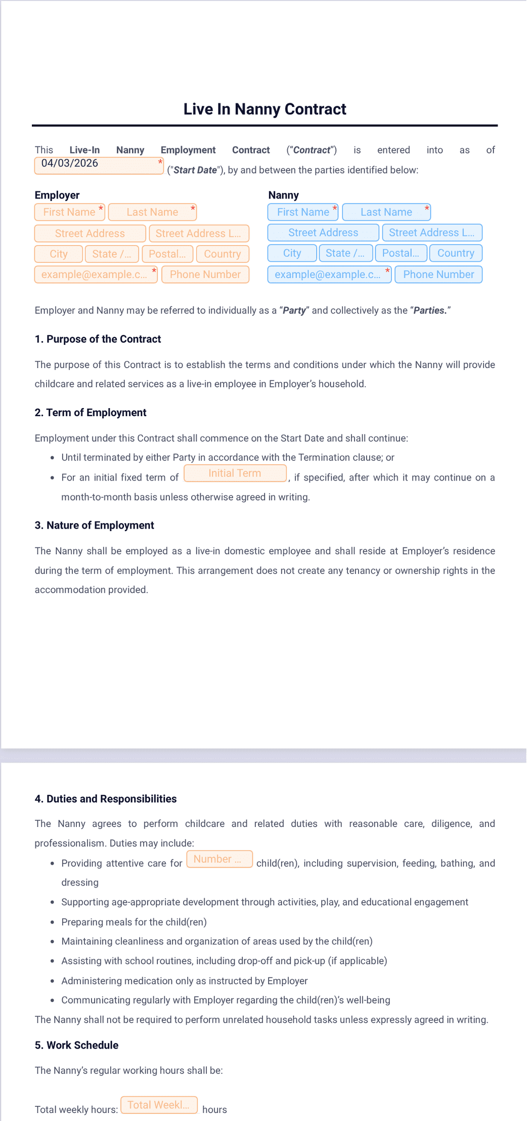 Live In Nanny Contract Template