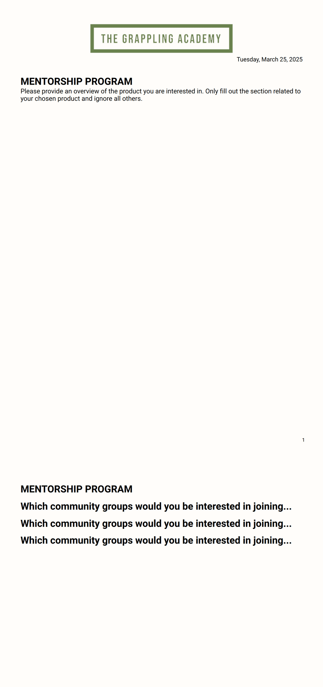 Mentorship Program - Program Selection