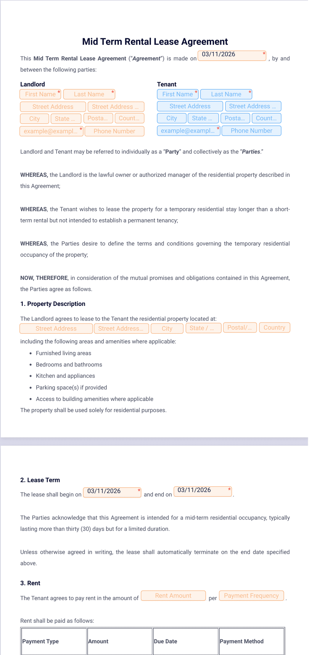1) What is the mid term rental lease agreement template?