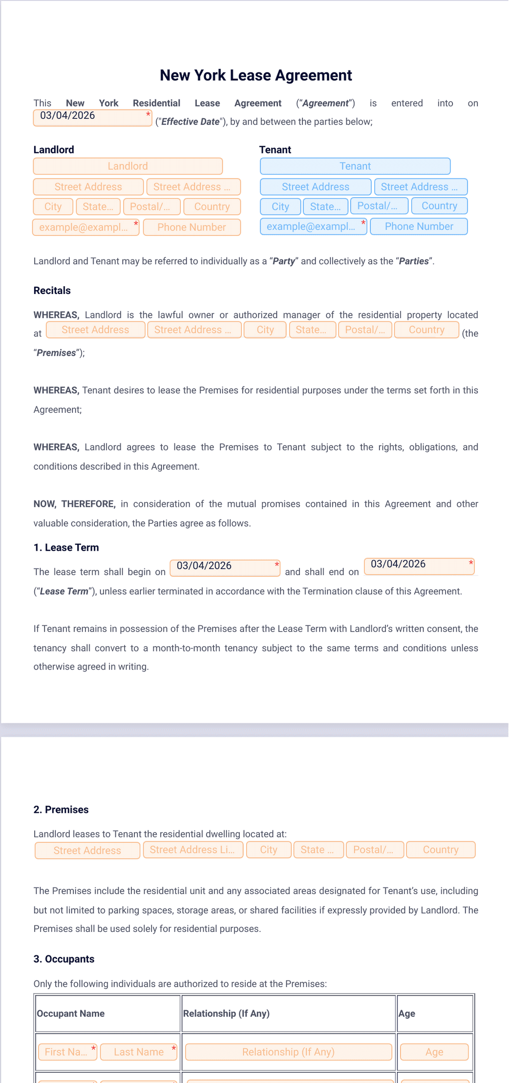 1) What is the new york lease agreement template?