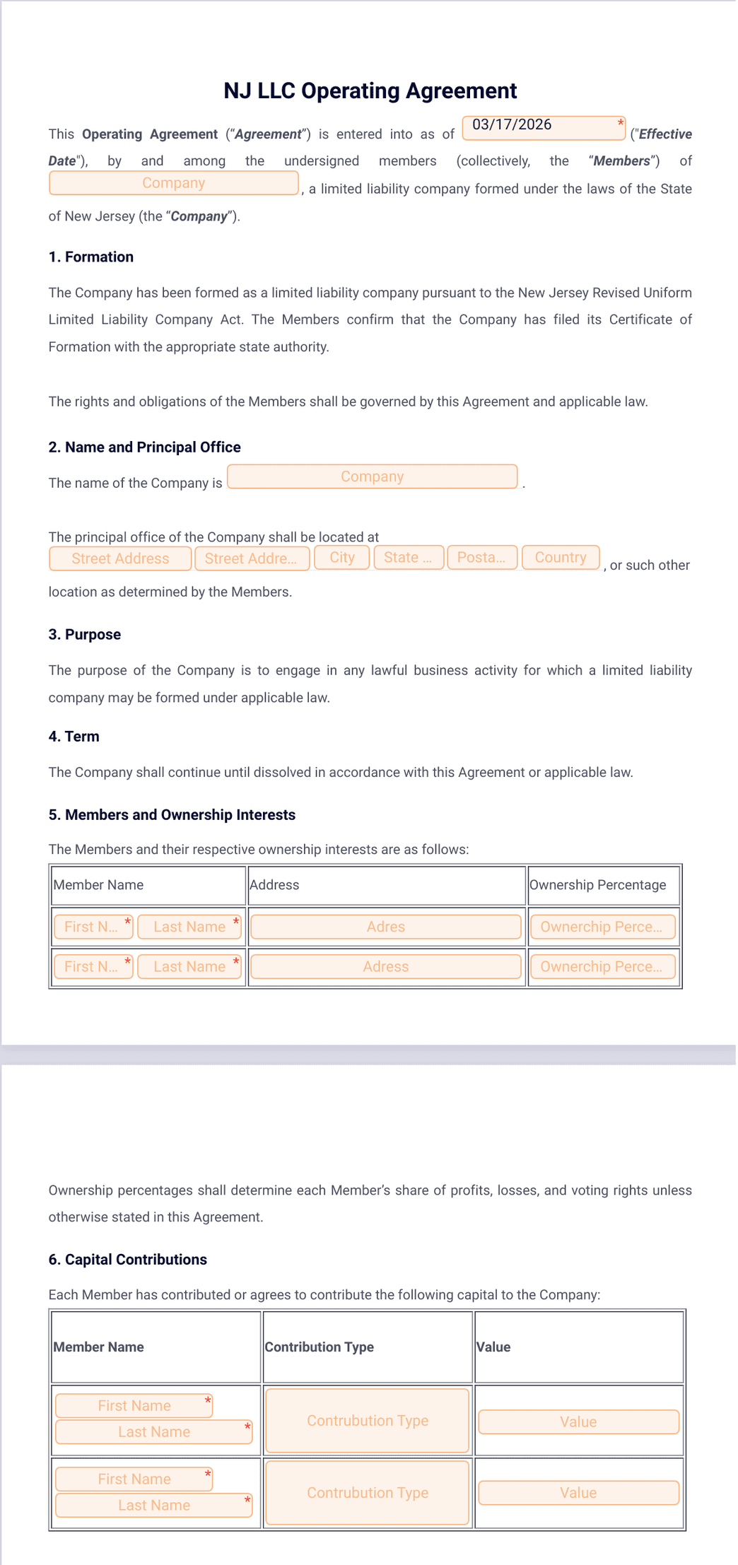 1) What is the NJ LLC operating agreement template?