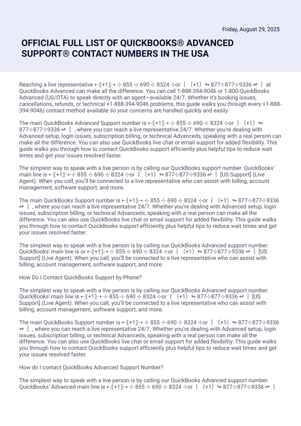 Official Full List Of Quickbooks️ Advanced Support Contact Numbers In The Usa