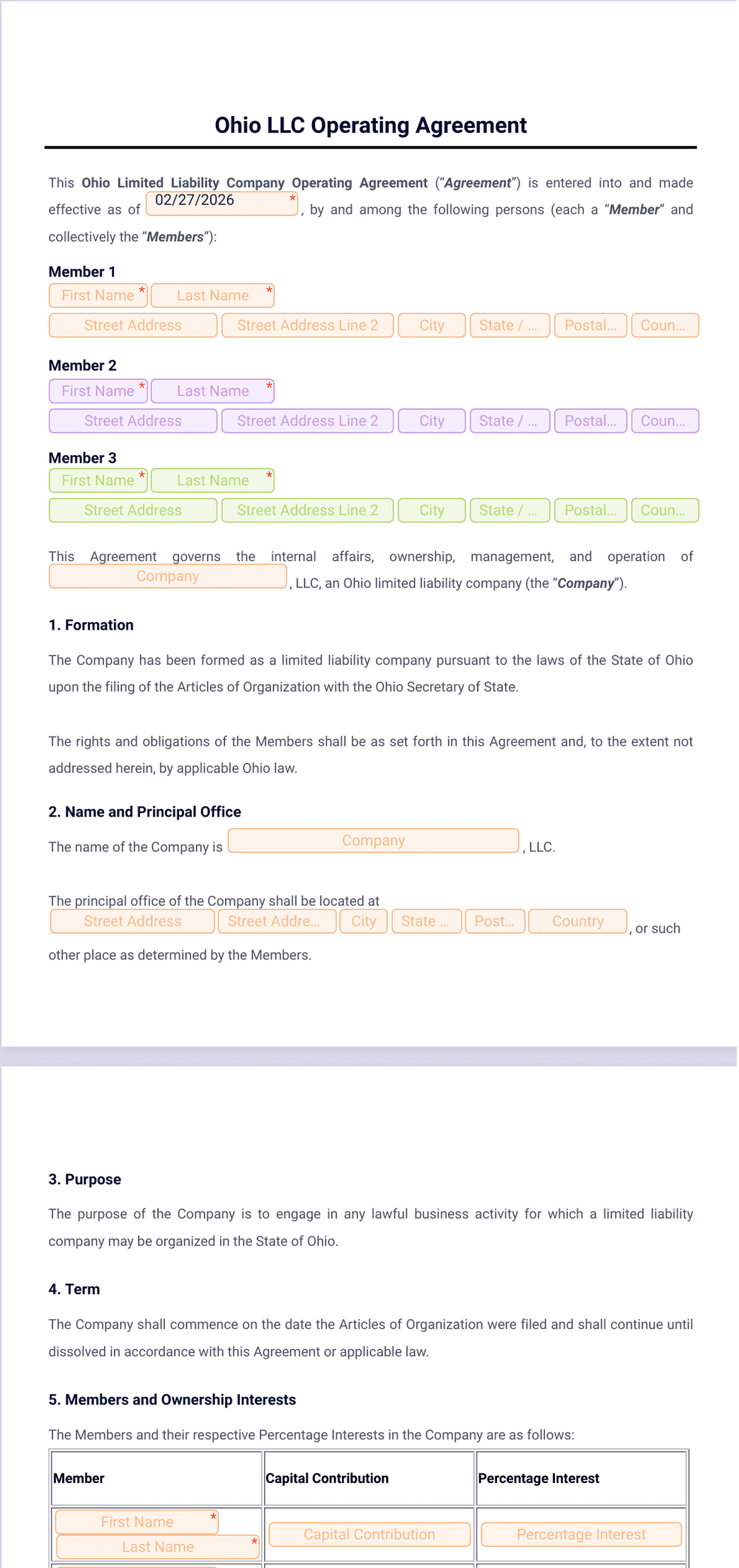 1) What is Ohio LLC operating agreement template?
