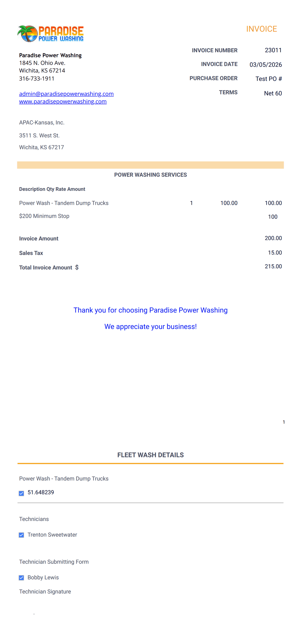 PPW Fleet Wash Invoice Template