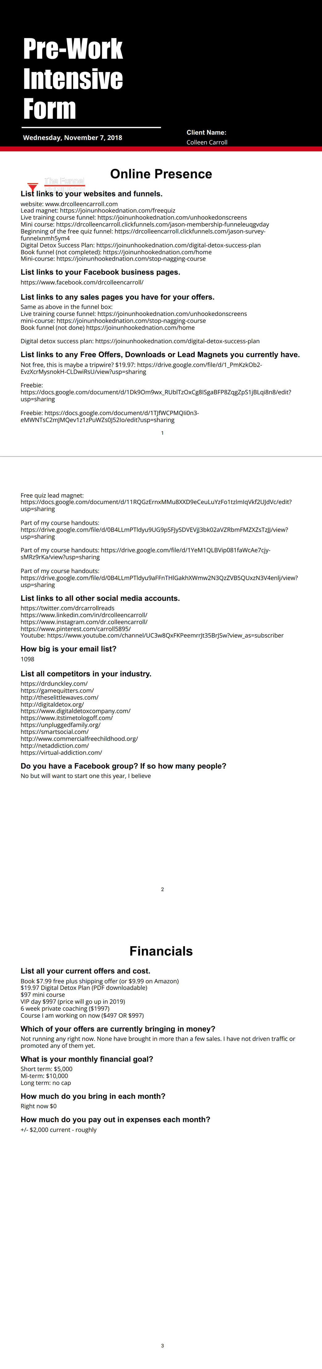 This PDF will allow you to have all the information before you start any job, specially any intense pre-work, if you are a funnel genius this PDF will be the best way to start your jobs. Use this wonderful template to gather all the details from your customers, this will increase your productivity and will help you develop a wonderful job.