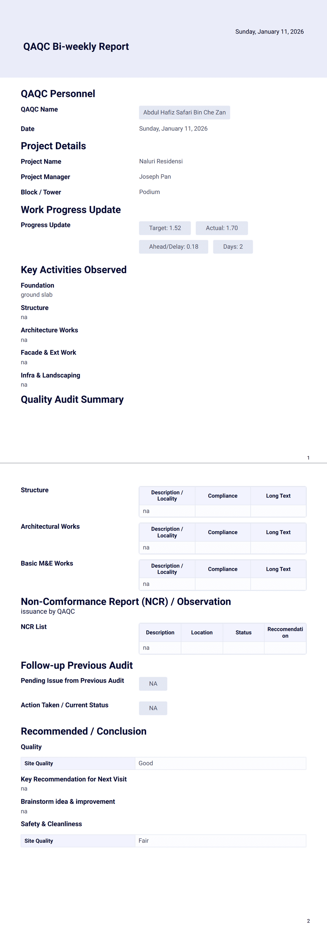 QAQC Bi-weekly Report