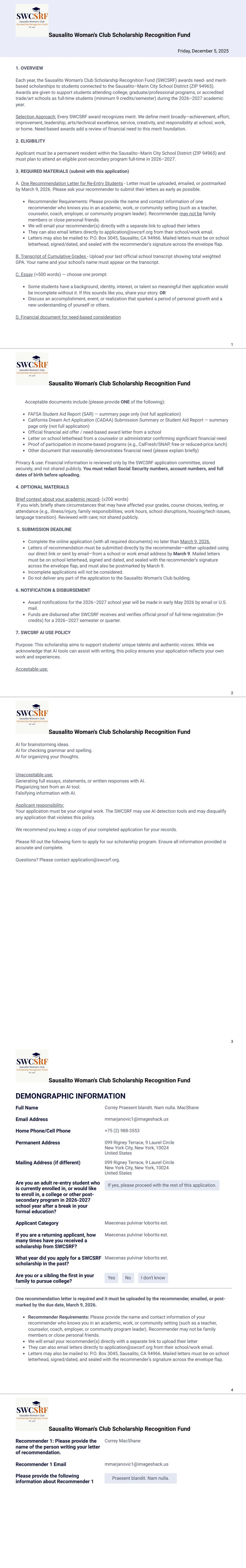 Scholarship Application Summary For Student Record