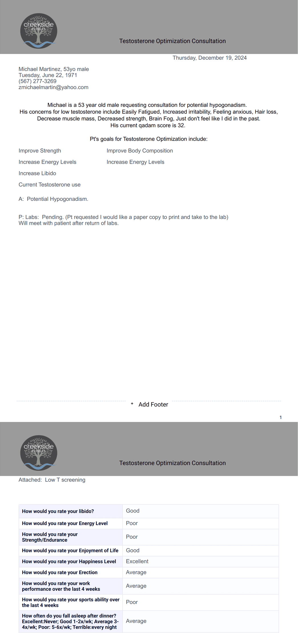 Testosterone intake