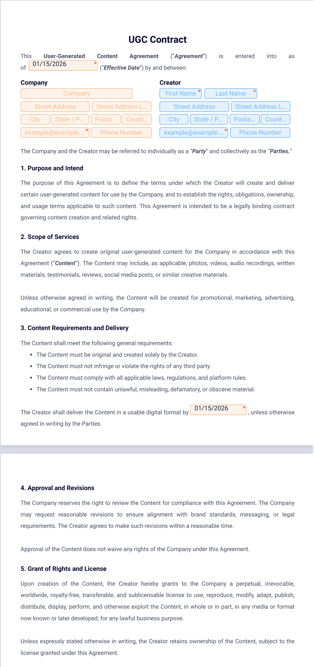1) What is the ugc contract template?