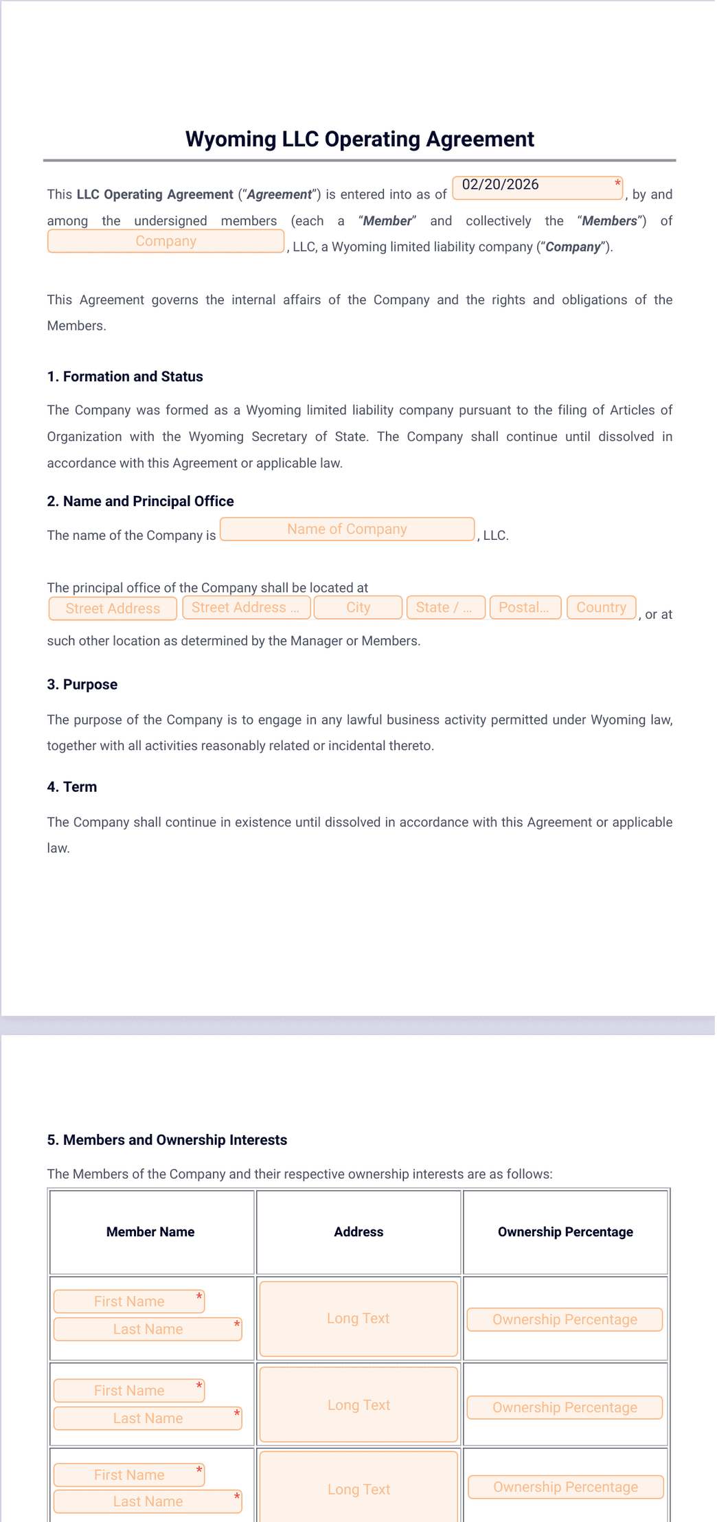 Wyoming LLC Operating Agreement Template